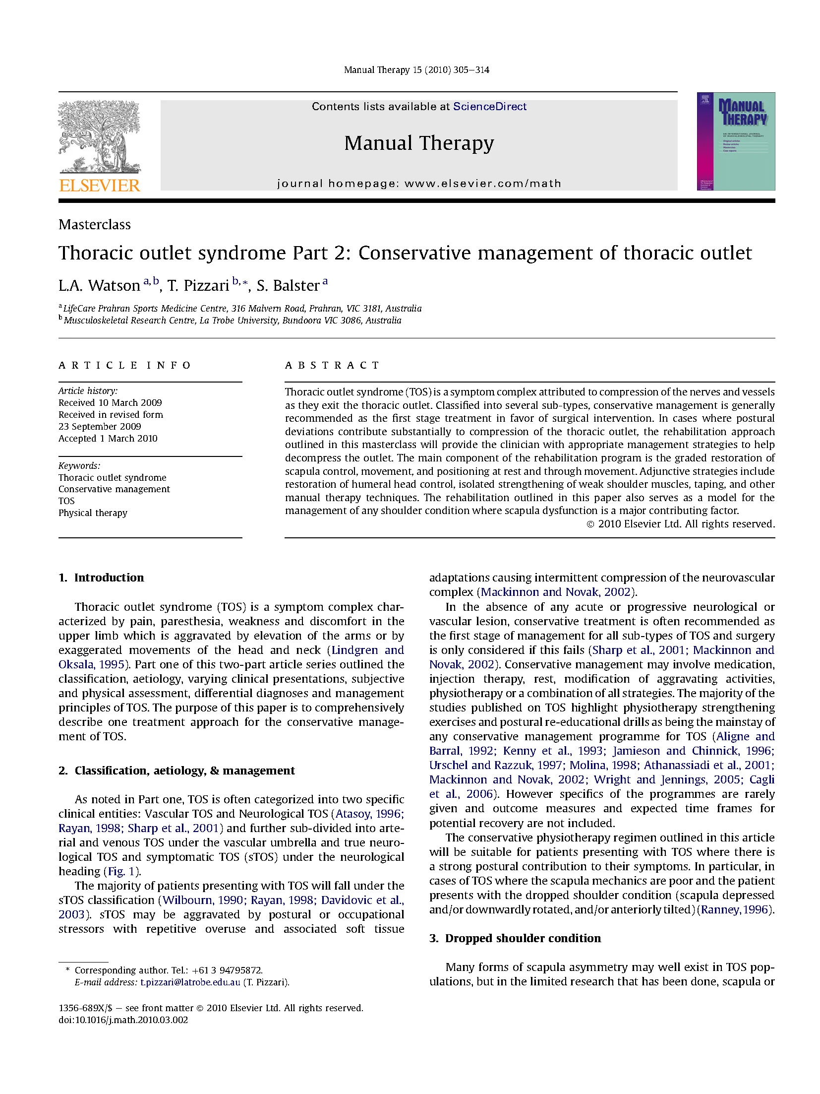 The Melbourne Shoulder Group: Lyn Watson (Founder & Director), Simon Balster (Founder & Director), Ross Lenssen, Sarah Warby, Kat Davis, Jane Nailon, Daniel Verdon, Bonnie Kerr, Sam Lawrence and Sarah Forsyth.