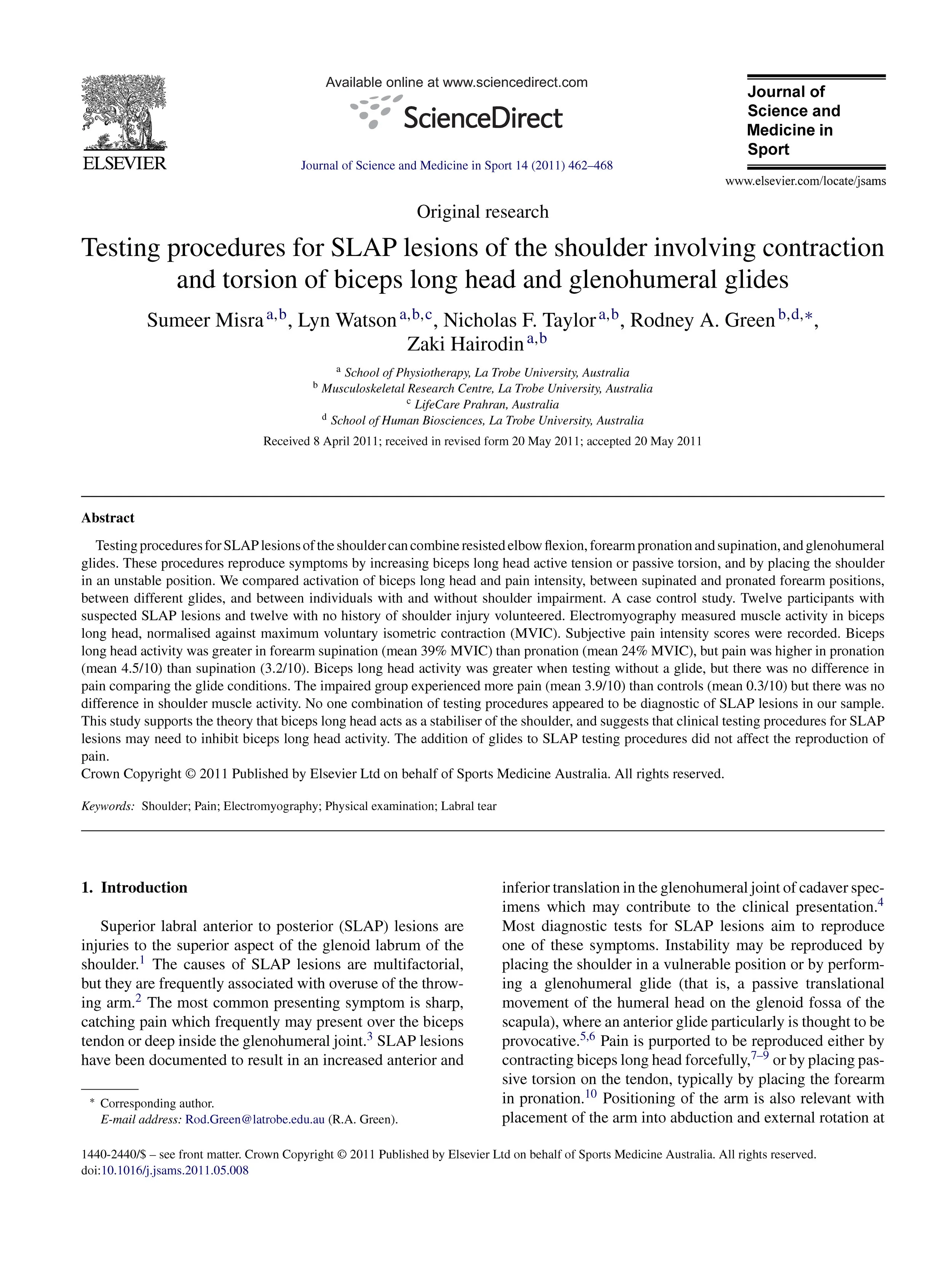 Collaborations: Dr Charlotte Ganderton at Swinburne University, Dr Tania Pizzari at Latrobe University, Mr Greg Hoy & Mr Shane Barwood at Melbourne, Orthopaedic Group, Dr Jackie Sadi at Western University in Ontario and Victoria House Medical Imaging